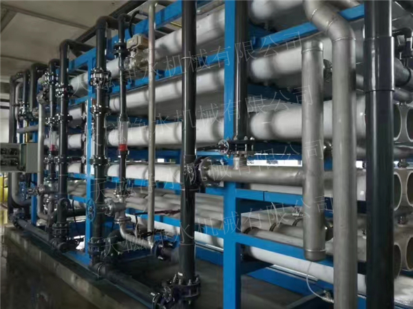 整个系统由预处理与反渗透两部分组成。反渗透机组前的部分为预处理部分,其作用是去除原水中的悬浮物、胶体、有机物及微生物等,这些物质容易导致膜污染。反渗透装置能否正常运行在很大程度上取决于预处理系统的设计和运行是否合理。